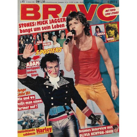 STARS AKTUELL: Udo Lindenbergs faszinierendes Political Mick Jagger zittert um sein Leben Kiss mit BRAVO-Leser in Mexiko Olivia Newton-John: Meine schönsten Augenblicke Michael Schenkers Abkehr von den Drogen Adam Ant veräppelt Stars Roland Kaisers Reise in die Vergangenheit Santana mit neuem Mann
