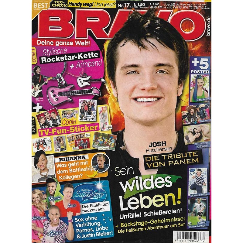 Stars: DSDS: Die Finalisten packen aus Rihanna: Was läuft da mit ihrem Film-Kollegen? How I Met Your Mother: Jason Segel ist frisch verliebt Mandy Capristo: Jetzt startet sie solo durch Justin Bieber & Selena Gomez: Love-Tipps vom Traumpaar Miley Cyrus: So wehrt sie sich gegen die Magersuchts-Gerüchte Big Time Rush: Die Jungs verraten ihre Kuss-Geheimnisse Conor Maynard: Seine coolen HipHop-Homies GNTM: Hass-Attacken auf Diana und Luisa Die Toten Hosen: Die geilste Punk-Party der Welt Adele: Dieser Typ brach ihr das Herz EM-Serie: Bastian Schweinsteiger BRAVO-Rock-Legende: KISS Die Meister des Schock-Rock The Vampire Diaries: Paul Wesley holt seine Frau in die Serie Nicki Mini: 5 Facts über die Rap-Queen Cro: Das Geheimnis hinter seinem Hit Easy Victoria Justice chillt im New Yorker Central Park Johnny Depp: Seine voll verrückte Freundschaft mit Regisseur Tim Burton