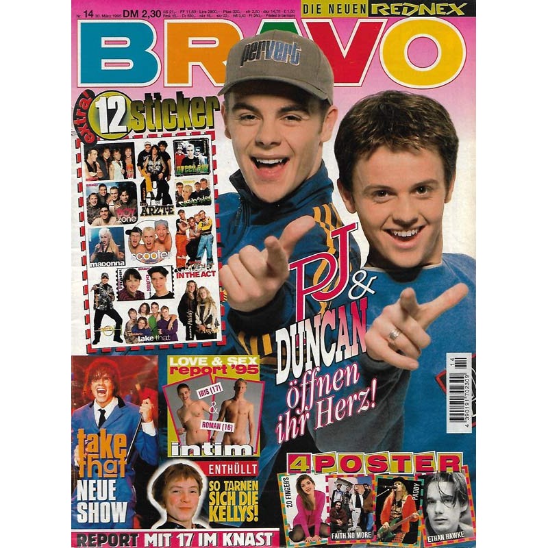 PLUS: 12 Sticker (evtl. enthalten) - Take That: Neue Show - Love & Sex Report 1995: Iris 17 Jahre und Roman 16 Jahre ganz intim - Enthüllt: So tarnen sich die Kellys - 4 Poster: 20 Fingers; Faith no more; Paddy; Ethan Hawke (zum Teil enthalten) - Report: Mit 17 im Knast - Die neuen Rednex
