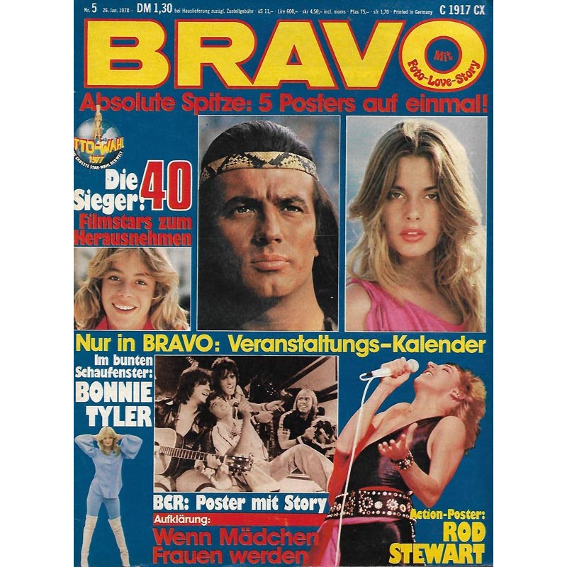 Titelbild: Absolute Spitze: 5 Poster auf einmal! (evtl. enthalten) - Die Sieger: 40 Filmstars zum herausnehmen (evtl. enthalten) - Nur in Bravo: Veranstaltungskalender - Im bunten Schaufenster: Bonnie Tyler - Action Poster: Rod Stewart (evtl. enthalten) - Aufklärung: Wenn Mädchen frauen werden
