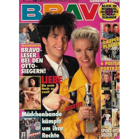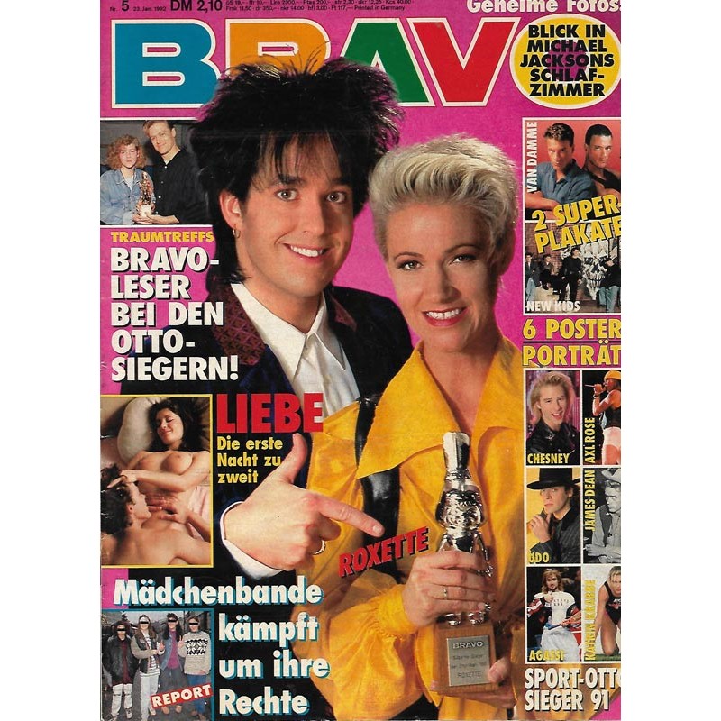 PLUS: Geheime Fotos: Blick in Michael Jacksons Schlafzimmer - Traumtreffs: Bravo Leser bei den Otto Siegerin! - Liebe: Die erste Nacht zu zweit - Mädchenbande kämpft um ihre Rechte - Poster: Van DAmme; New Kids; Chesney; Axl Rose; Udo; James Dean; Agassi; Katrin Krabbe (zum Teil enthalten)