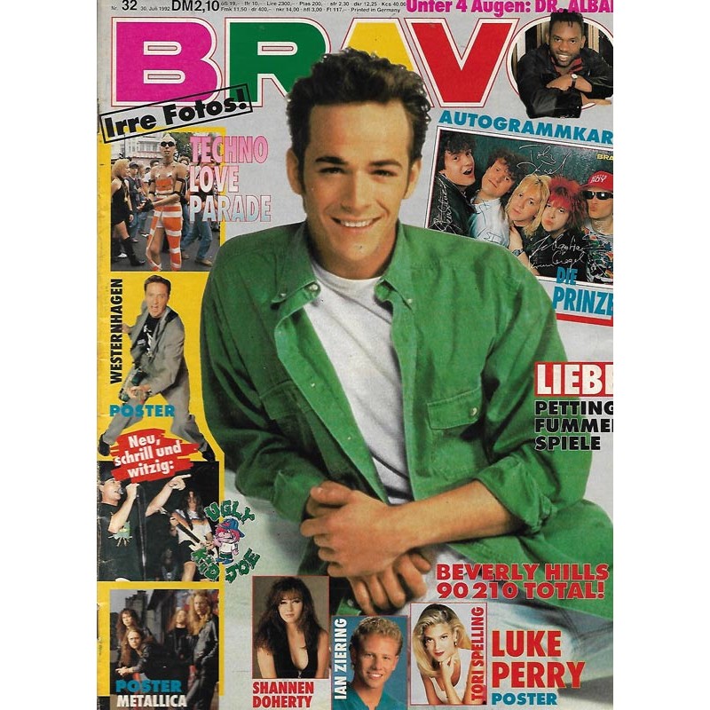 PLUS: Shannen Doherty; Ian Ziering; Tori Spelling; Poster: Luke Perry; Tori Spelling; Ian Ziering; Shannen Doherty (zum Teil enthalten) - Liebe: Petting Fummelspiele - Autogrammkarte: Die Prinzen (evtl. enthalten) - Unter 4 Augen: Dr. Alban - Irre Fotos: Techno Love Parade