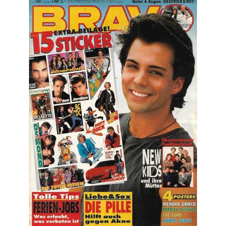 PLUS: Unter 6 Augen: Siegfried & Roy - Überraschende Famileinfotos: New Kids on the Block und ihre Mütter - Tolle Tips: Ferienjobs. Was erlaubt, was verboten ist - Liebe & Sex: Die Pille hilft auch gegen Akne - Poster: Richard Grieco; Patrick Swayze; The Cure; Andre Agassi (zum Teil enthalten) - Extra Beilage: 15 Sticker (evtl. enthalten)