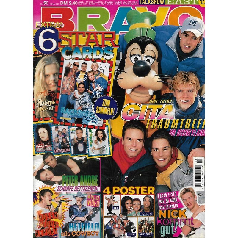 PLUS: Peter Andre: Scharfe Bettszenen - Hosen Tour Report - Metallica Video: Hetfield als Cowboy - Talkshow: East 17 - Bravo Leser über die neuen BSB Frisuren: Nick kommt gut! - Poster: Bobo; Tic Tac Toe; Kelly Family; N Sync (zum Teil enthalten) - Extra: 6 Star Cards (evtl. enthalten)