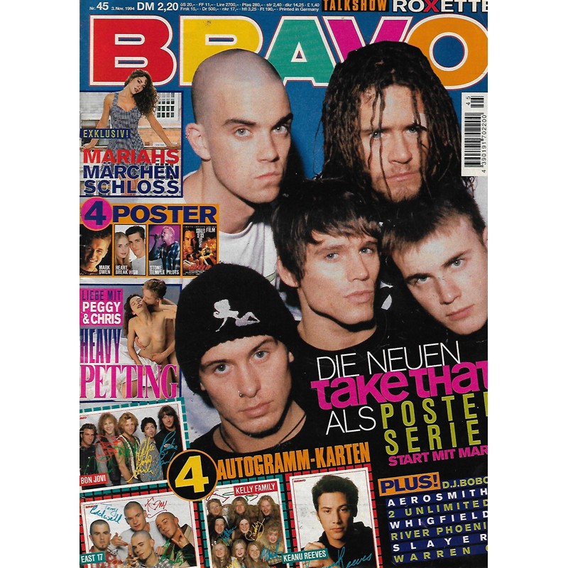 PLUS: Talkshow: Roxette - Exklusiv: Mariahs Märchen Schloss - Liebe mit Peggy & Chris: Heavy Petting - Extra: 4 Autogrammkarten (evtl. enthalten) - Poster: Mark Owen; Heart Break High; Stone Temple Pilots; Film Speed (zum Teil enthalten) - Plus: DJ Bobo; Aerosmith; 2 Unlimited; Whigfield; River Phoenix; Slayer; Warren G