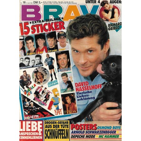 PLUS: Unter 4 Augen: Richard Grieco - Liebe: Ansprechen & Kennenlernen - Drogen Gefahr aus der Tüte: Schnüffeln - Extra: 15 Sticker (evtl. enthalten) - Poster: Osmond Boys; Arnold Schawarzenegger; Depeche Mode; MC Hammer (zum Teil enthalten)
