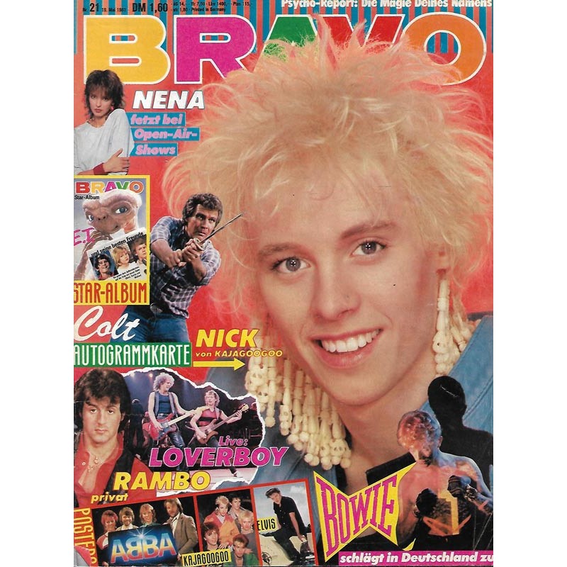 PLUS: Psycho Report: Die Magie deines Namens - Nena fetzt bei Open Air Shows - Star Album - Autogrammkarte: Colt (evtl. enthalten) - Live: Loverboy - Rambo Privat - Bowie schlägt in Deutschland zu - Poster: Abba; Kajagoogoo; Elvis (zum Teil enthalten)