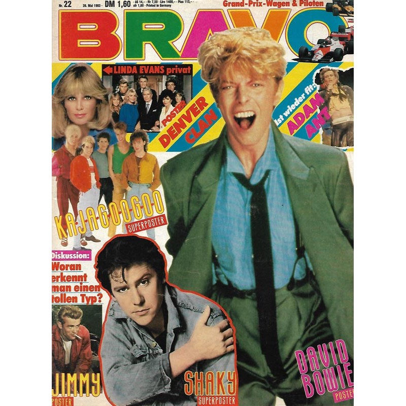 PLUS: Grand Prix: Wagen und Piloten - Linda Evans privat - Diskussion: Woran erkennt man einen tollen Typ? - Ist wieder fit: Adam Ant - Poster: Denver Clan; Shaky; David Bowie; Jimmy; Kajagoogoo (zum Teil enthalten)