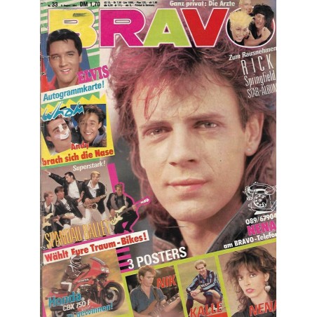 PLUS: Ganz privat: Die Ärzte - Elvis Autogrammkarte (evtl. enthalten) - Wham: Andy brach sich die Nase - Superstark Spandau Ballet - Nena am Bravo Telefon - Poster: Nik; Kalle; Nena (zum Teil enthalten)