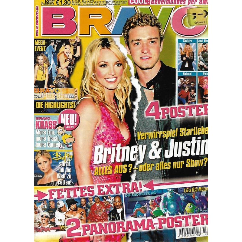 PLUS: Cool: Geheimcodes per SMS - Megaevent: Bravo Supershow, die Highlights - Buffy stirbt um die Welt zu retten - Poster: Shakira; Natural; Pink; Josh Harnett (zum Teil enthalten) - Extra: Hip Hop Attack; Die Monster AG (evtl. enthalten)