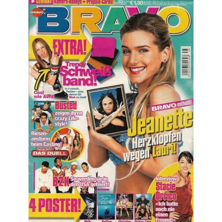 PLUS: Extra: Trendy Schweiband (evtl. enthalten) - Interview: Stacie Orrico: Ich hatte noch nie einen Freund - B2K: So werden sie in den USA gefeiert - Busted zeigen ihren crazy Lifestyle - Popstars das Duell: Riesenansturm beim Casting - Poster: Before Four; Christina; Delfine; Nelly (zum Teil enthalten)