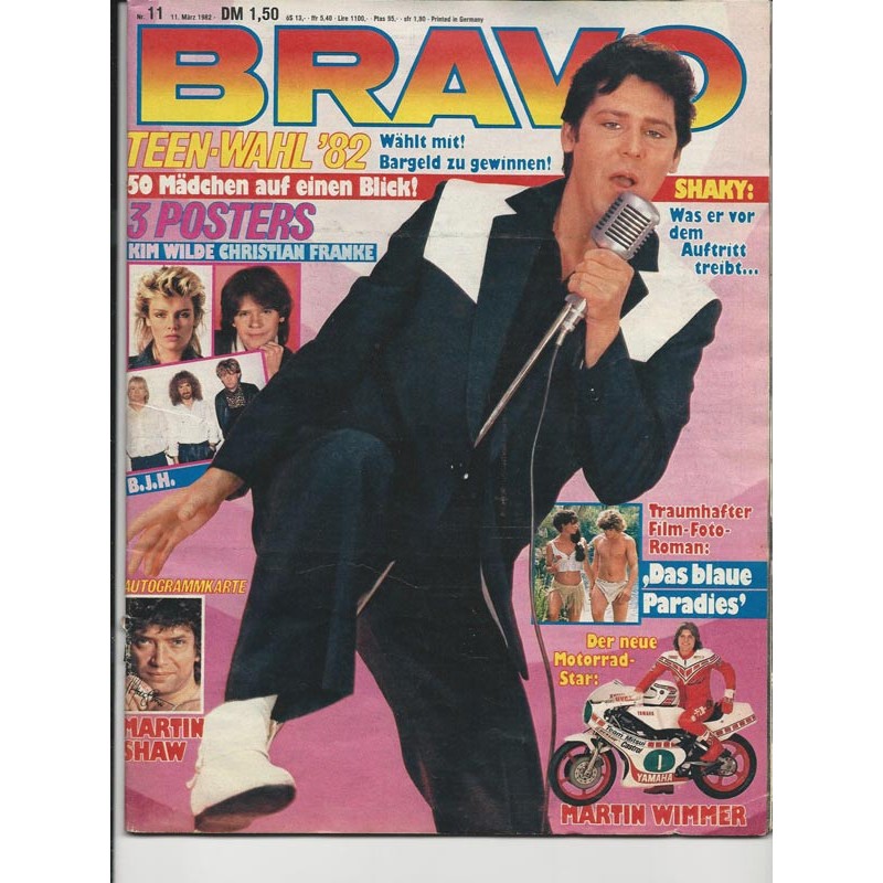PLUS: Teen Wahl 82 Wählt mit! Bargeld zu gewinnen!- Traumhafter Film-Foto-Roman: Das blaue Paradies - Der neue Motorrad Star: Martin Wimmer - Poster: Kim Wilde, Christian Franke, BJH (zum Teil enthalten)
