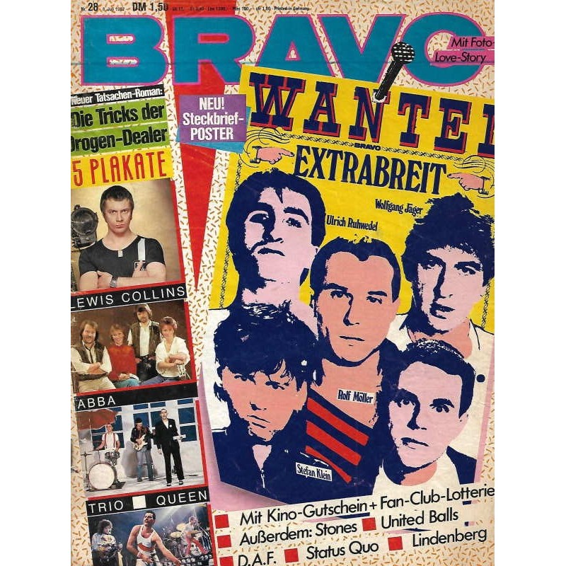 PLUS: Neue Tatsachen Roman: Die Tricks der Drogen Dealer - Poster: Lewis Collins; Abba; Trio; Queen (zum Teil enthalten) - Außerdem: Stones; United Balls; D.A.F.; Status Uuo; Lindenberg