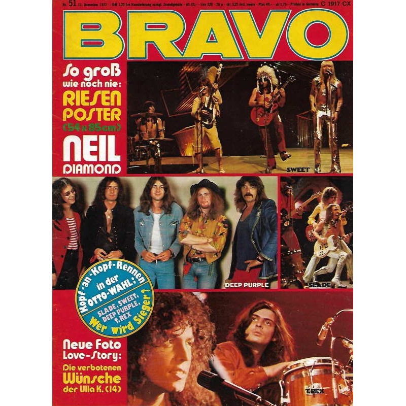 PLUS: Kopf an Kopf Rennen in der Otto Wahl: Slade, Sweet, Deep Purple, T.Rex. Wer wird Sieger? - Neue Foto Love Story: Die verbotenen Wünsche der Ulla K. 14 Jahre - So groß wie noch nie: Riesen Poster: Neil Diamond (evtl. enthalten)