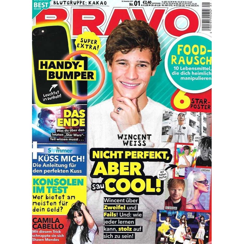 PLUS: Blutgruppe: Kakao! - Food Rausch: 10 Lebensmittel, die dich heimlich manipulieren - Das Ende: Was du über den letzten Star Wars Teil wissen musst - Dr. Sommer: Küss mich! Die Anleitung für den perfekten Kuss - Konsolen im Test: Wer bietet am meisten für dein Geld? - Camila Cabello: Mit diesem Trick schnappte sie sich Shawn Mendes - Poster: Red Velvet; Ed Sheeran; Loredana; Juice Wrld; Raf Camora (zum Teil enthalten)