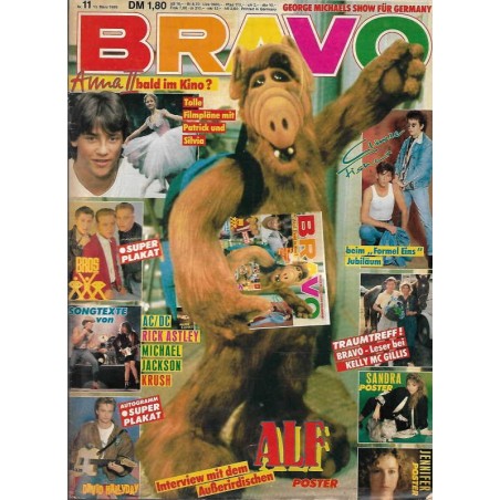 PLUS: George Michaels Show für Germany - Anna bald im Kino? Tolle Filmpläne mit Patrick und Silvia - Traumtreff: Bravo Leser bei Kelly Mc Gillis - Poster: Sandra; Jennifer; Bros; David Hallyday (zum Teil enthalten) - Songtexte von: AC/DC; Rick Astley; Michael Jackson; Krush