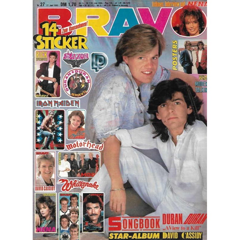 PLUS: Intimes Interview mit Nena - Star Album: David Cassidy - Songbook: Duran Duran a View to a Kill - Poster: Wham; Olaf Thon; Modern talking (zum Teil enthalten) - Extra: 14 Sticker (evtl. enthalten)