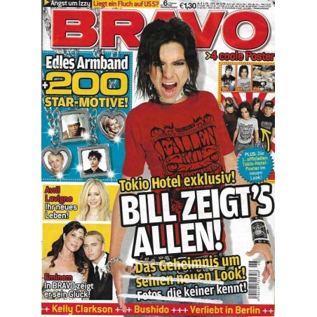 PLUS: Angst um Izzy: Liegt ein Fluch auf US 5? - Avril Lavigne: Ihr neues Leben - Eminem: In Bravo zeigt er sein Glük - Kelly Clarkson; Bushido; Verliebt in Berlin - Poster: Marc Terenzi; Bill Kaulitz; Pink (zum Teil enthalten) - Extra: Edles Armband (evtl. enthalten)