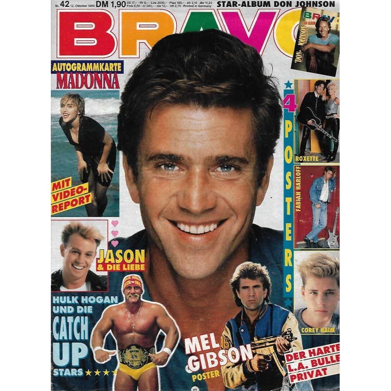 PLUS: Star Album: Don Johnson (evtl. enthalten) - Autogrammkarte Madonna mit Video Report (evtl. enthalten)- Hulk Hogan und die Catch Up Stars - Jason & die Liebe - Poster: Roxdette; Fabian Harloff; Corey Haim; Mel Gibson (zum Teil enthalten)