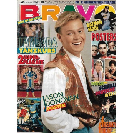 PLUS: Die 10 gefährdesten Tierarten - Nur in Bravo: Lambada Tanzkurs - Neu! Schrille deutsche Welle - Freaky Fukin und andere Bands - Batman Mode - Poster: Depeche Mode; Martika; Andre Agassi; Jason Donovan; Michael Jackson; Batman (evtl. enthalten)