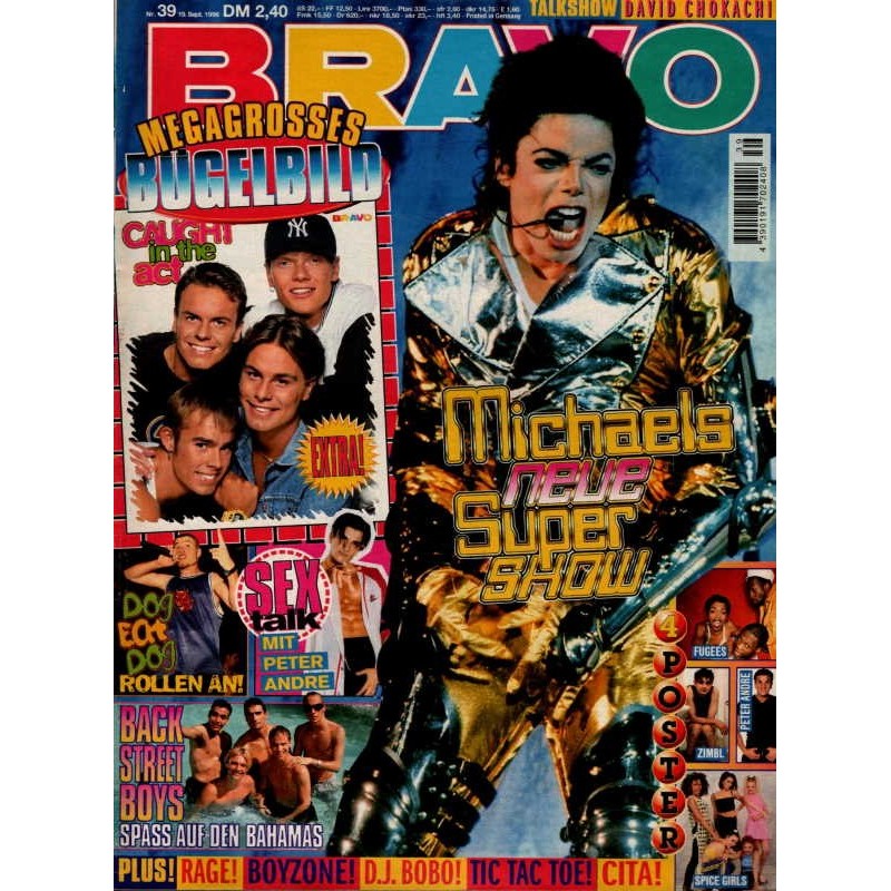PLUS: Talkshow: David Chokachi - Dog eat Dog rollen an - Sextalk mit Peter Andre - Backstreet Boys: Spass auf den Bahamas - Plus: Rage!; Boyzone; D.J. Bobo; Tic Tac Toe; Cita! - Poster: Fugees; Zimbl; Spice Girls; Peter Andre (zum Teil enthalten) - Extra: Bügelbild (evtl. enthalten)
