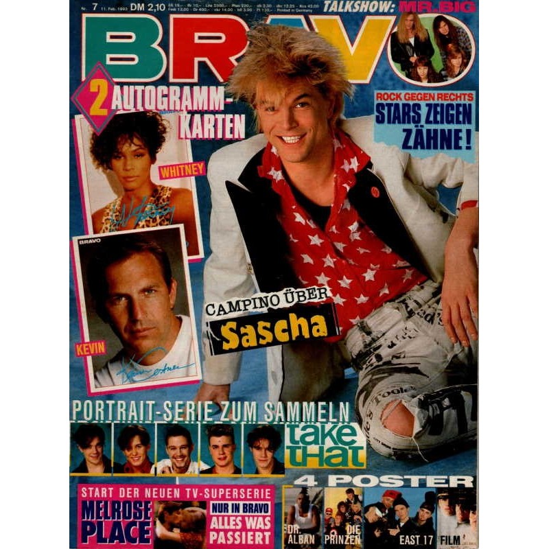 PLUS: Talkshow: Mr. Big - Start der neuen TV Super Serie: Melrose Place. Nur in Bravo, alles was passiert - Rock gegen Rechts: Stars zeigen Zähne - Poster: Dr. Alban; Die Prinzen; East 17; Film (zum Teil enthalten) - Autogrammkarten (evtl. enthalten)
