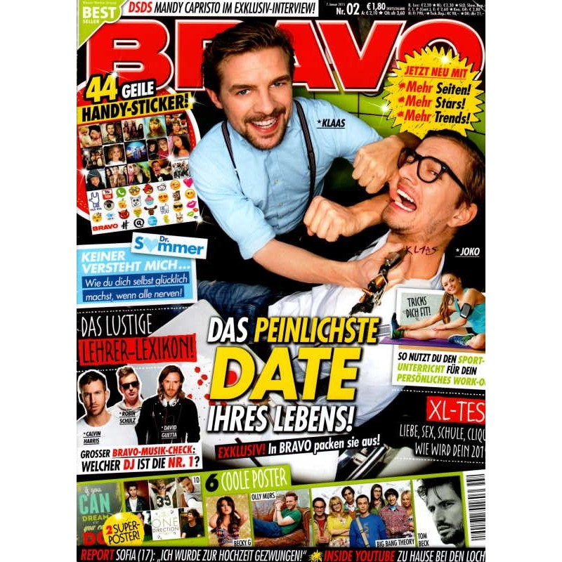 PLUS: DSDS: Mandy Capristo im exklusiv Interview - Dr. Sommer: Keiner versteht mich.... Wie du dich selbst glücklich machst, wenn ale nerven - Das lustige Lehrer Lexikon: Grosser Bravo Musik Check: Welcher DJ ist die Nummer 1? - XL Test: Liebe, Sex, Schule, Clique. Wie wird dein 2015? - Report: Sofia 17 Jahre: Ich wurde zur Hochzeit gezwungen - Inside Youtube: Zu Hause bei den Lochis - Poster: 1D, Becky G, Big Bang Theory, Tom Beck (zum Teil enthalten)