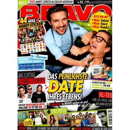 Stars: Titelstory: Joko & Klaus Exklusiv in BRAVO: „Unser peinlichstes Date!" Ella Henderson CD-Check: das erste Album der Newcomerin! DJ-Battle Großer BRAVO-Musik-Check: Wer ist die Nr.1? Mandy Capristo Exklusiv-Talk: „Meine Stärke sind meine Gefühle" Ellie Goulding Befreundet mit dem Ex — wie geht so was? + Dr.-Sommer-Test: Kann das auch bei dir klappen? MissesVlog In BRAVO verrät sie den Soundtrack ihres Lebens Bass Sultan Hengzt Was hat der Berliner Rapper in seiner Tasche? Daniele Negroni WhatsApp-Chat mit dem Super-Sänger Community Du & dein Star / Impressum Star-Duell Style-Battle — vote deinen Favoriten
