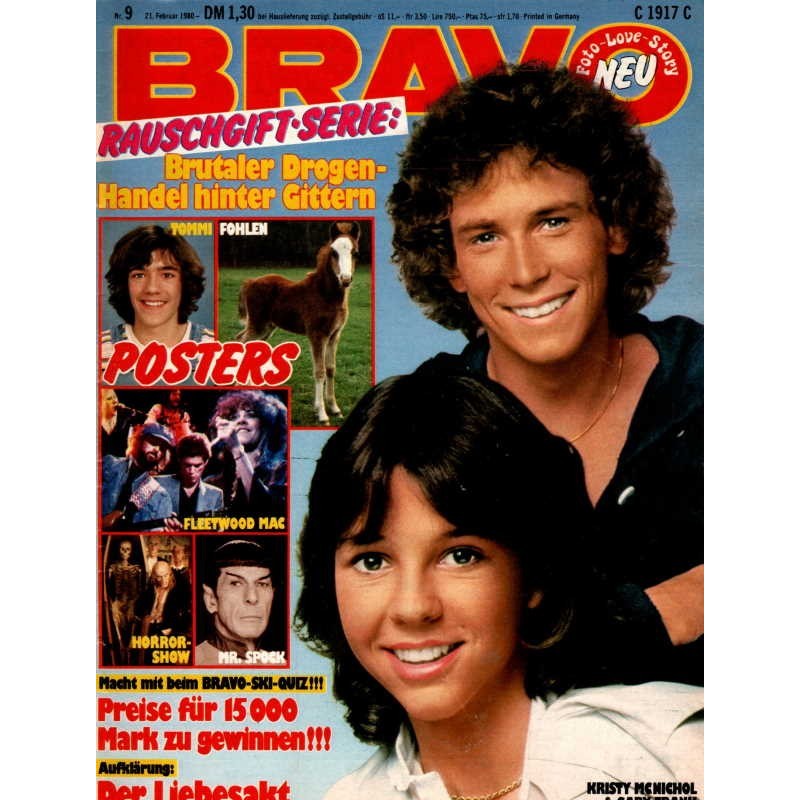 PLUS: Rauschgift Serie: Brutaler Drogen Handel hinter Gittern - Aufklärung: Der Liebesakt - Macht mit beim Bravo Ski Quiz - Poster: Tommoi, Fohlen, Fleetwood Mac, Horror Show, Mr. Spock (zum Teil enthalten)