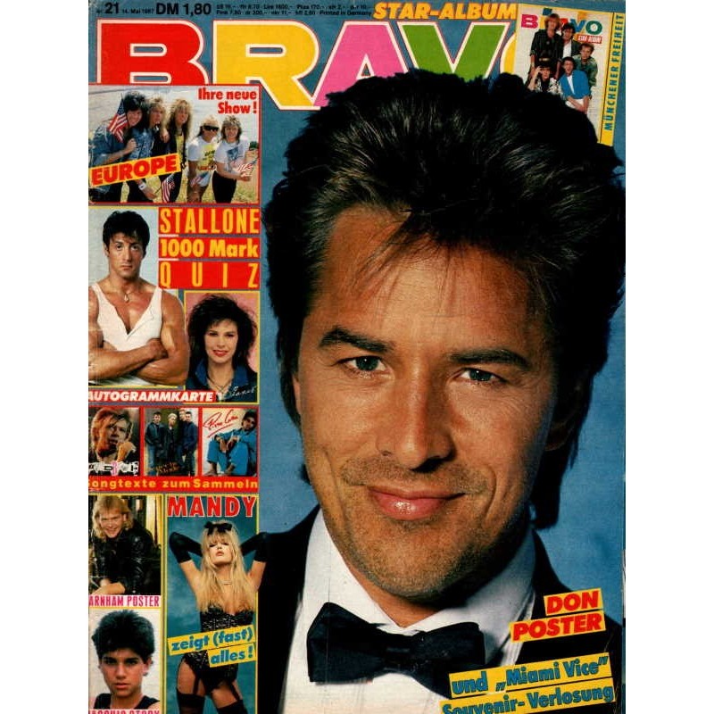 PLUS: Europe: Ihre neue Show - Songtexte zum Sammeln - Mandy Smith zeigt fast alles - Star ALbum: Münchner Freiheit (evtl. enthalten) - Stallone 1000 Mark Quiz - Autogrammkarte: Bonnie Bianco (evtl. enthalten) - Poster: John Farnham, David Hasselhoff, Don Johnson uvm. (zum Teil enthalten) - Macchio Story