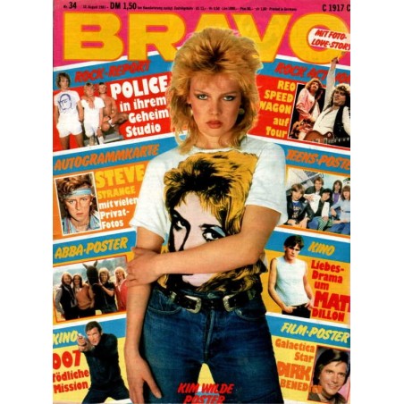 PLUS: Rock Report: Police in ihrem Geheim Studio - Rock Action: Reo Speed Wagon auf Tour - Autogrammkarte: Steve Strange mit vielen Privatfotos (evtl. enthalten) - Kino: Liebesdrama um Matt Dillon - 007: Tödliche Mission - Galactica Star: Dirk Bened - Poster: Abba, Teens, Dirk Bened, Kim Wild (zum Teil enthalten)