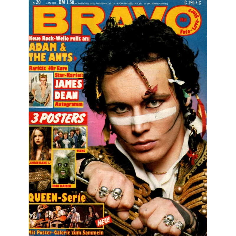 STARS AKTUELL Adam Ant, der Paradiesvogel REO Speedwagon, die bösen Buben des Rock Trix — Rock-Drillinge ausArgentinien Fischer Z— Karriere mit New Wave Roland Kaiser: Ich bin kein Schnulzenheini Spandau Ballet stellt sich vor Iron Maiden zittern um ihren Sänger Noice — Schweden-Teenie-Rock Cliff Richard und Olivia Status Quo in Germany Hansi Müller und der BRAVO-Otto Suzi Quatro wird Mutter