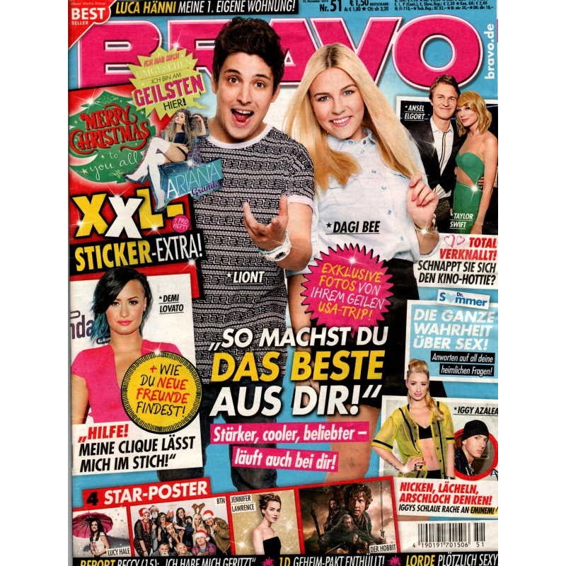 PLUS: Luca Hänni: Meine 1. eigene Wohnung - Demi Lovato: Hilfe! Meine Clique lässt mich im Stich! - Dr. Sommer: Die ganze Wahrheit über Sex. Antworten auf all deine heimliche Fragen - Ansel Elgort und Taylor Swift: Total verknallt, schnappt sie sich den Kino Hottie? - Iggy Azalea: Nicken, Lächeln, Arschloch denken! Iggys schlaue Rache an Eminem - Report: Beccy 15 Jahre: Ich habe mich geritzt - 1D: Geheim Pakt enthüllt - Lorde: Plötzlich sexy - Extra: XXL Sticker (evtl. enthalten) - Poster: Lucy Hale, BTN, Jennifer Lawrence, Der Hobbit (zum Teil enthalten)