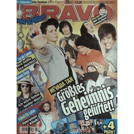 Stars Johnny Depp: Der Ober-Pirat verrät im ganz privaten Interview, warum er lieber „Spider-Man" wäre ... LaFee: Die Sängerin muss ins Krankenhaus! US 5: Schock! Richies Hund ,,Kendra" soll weg! Sido: Trotz Rap-Verbot stürmte er die Bühne! Rihanna: „Mein Vater war drogensüchtig!" Declan: Steine geschmissen! Scheiben eingeschlagen! Alles über den fiesen Angriff auf Dec! Killerpilze: Mit wem flirtet Jo denn da? Alles über ihr großes Comeback ... Tokio Hotel: Noch mehr coole Doppelgänger! Sarah Connor: Wow! Die krasse Sex-Beichte der Sängerin! Check!: Brandneue CDs, DVDs und Games Songhook: Rihanna und Alpa Gun Chart News: Charts und Tourdaten Exit: Witziger Rätselspaß und das Gedicht der Woche! Star-Check!: Georg von Tokio Hotel beantwortet den BRAVO-Fragebogen ...