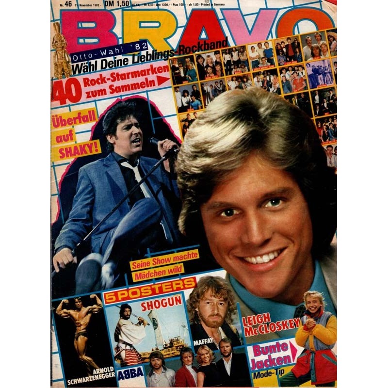 PLUS: Otto Wahl 82: Wähl deine Lieblings Rockband - Überfall auf Shaky! Seine Show machten Mädchen wild - Bunte Jacken: Mode Tip - Extra: 40 Rock Starmarken zum Sammlen (evtl. enthalten) - Poster: Peter Maffay, Abba, Shogun, Arnold Schwarzenegger (zum Teil enthalten)
