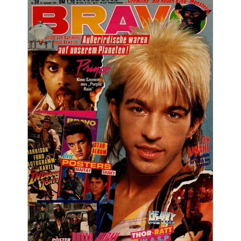 PLUS: Cremlins, die neuen Kino Monster - Erich von Dänikens neue Beweise: Außerirdische waren auf unseren Planeten - Prince: Kino Szenen aus Purple Rain - Star Album: Elvis Presley (evtl. enthalten) - Autogrammkarte: Harrison Ford (evtl. enthalten) - Poster: Duran Duran, Peter Maffay, Shaky, Thor, Ratt, W.A.S.P, Heavy Metal (zum Teil enthalten)