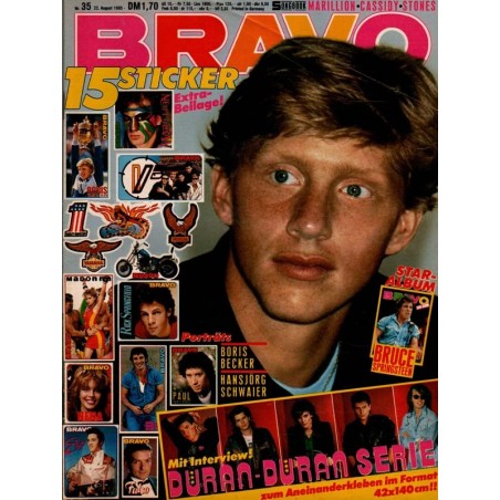 PLUS: Songbook: Marillion, Cassidy und Stones - Mit Interview! Duran Duran Serie zum Aneinanderkleben - Extra Beilage: 15 Sticker (evtl. enthalten) - Star Album: Bruce Springsteen (evtl. enthalten) - Poster: Boris Becker, Hansjörg Schwaier, Tina Turner uvm. (zum Teil enthalten)