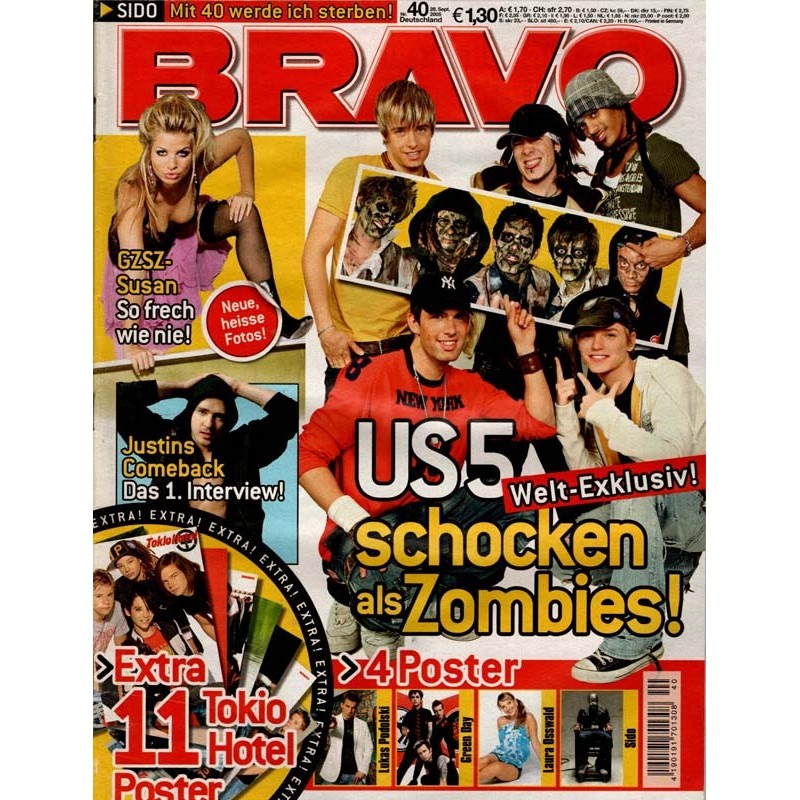 PLUS: Sido: Mit 40 werde ich sterben! - GZSZ-Susan: So frech wie nie, neue heisse Fotos - Justins Comeback: Das 1. Interview - Extra: 11 Tokio Hotel Poster (evtl. enthalten) - Poster: Lukas Podolski, Green Day, Laura Osswald, Sido (zum Teil enthalten)