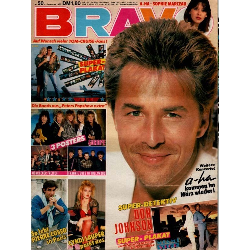 PLUS: Auf Wunsch viele Tom Cruise Fans! - Die Bands aus Peters Popshow extra - So lebt Pierre Cosso in Paris - Cyndi Lauper packt aus - Weitere Konzerte! a-ha kommen im März wieder! - Poster: Super Plakat Tom Cruise, Europe, Frankie goes to Hollywood, Münchner Freiheit (zum Teil enthalten)
