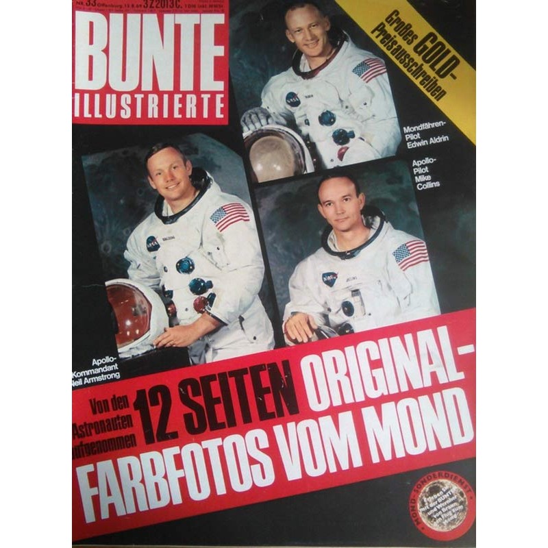 Titelbild: Farbfotos vom Mond. 12 Seiten. Apollo Kommandant Neil Armstrong. Von den Astronauten aufgenommen. Monfähren-Pilot Edwin Aldrin und Apollo-Pilot Mike Collins