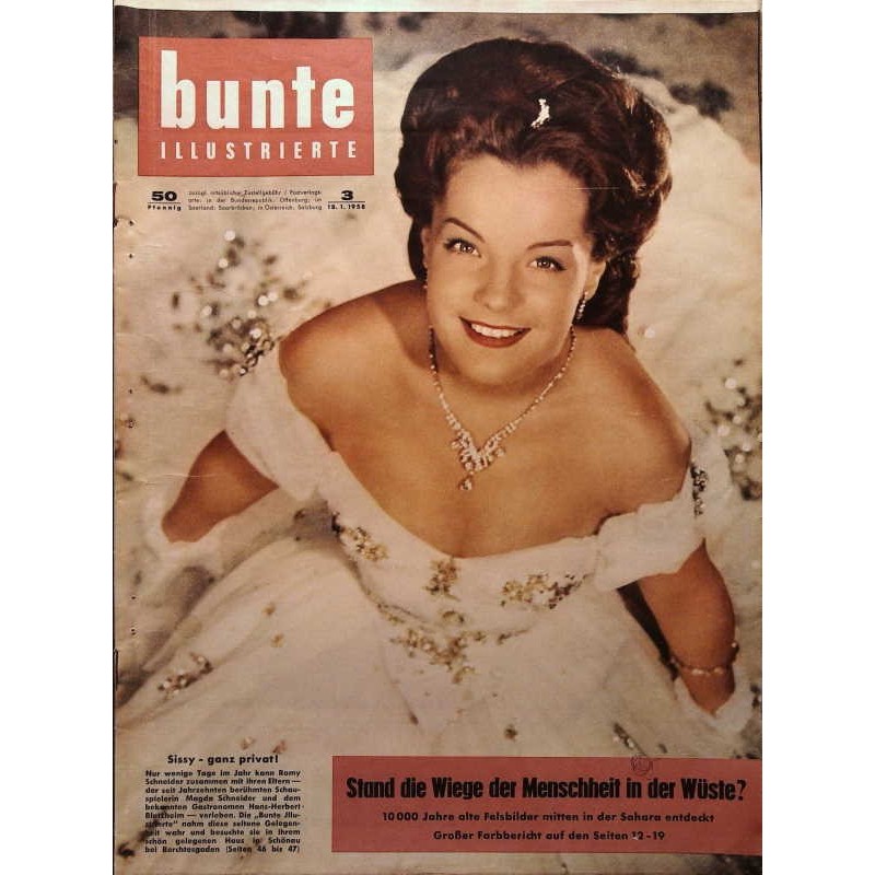Titelbild: Sissy ganz privat: Nur wenige Tage im Jahr kann Romy Schneider zusammen mit ihren Eltern, der seit Jahrzehnten berühmten Schauspielerin Magda Schneider und dem bekannten Gastronomen Hans-Herbert Blattheim — verleben. Die Bunte Illustrierte nahm diese seltene Gelegenheit wahr und besuchte sie in ihrem schön gelegenen Haus in Schönau bei Berchtesgaden