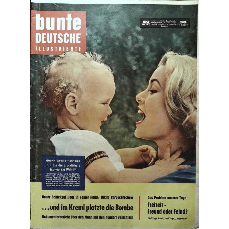 Titelbild: Fürstin Gracia Patricia: Ich bin die glücklichste Mutter der Welt. Familienzuwachs wird im Fürstenhaus von Monako erwartet. Mit Gracia Patricia freut sich Prinz Albert darüber. Die BUNTE DEUTSCHE Illustrierte veröffentlicht in diesem Heft die schönsten Farbfotos aus dem Album der Fürstin.