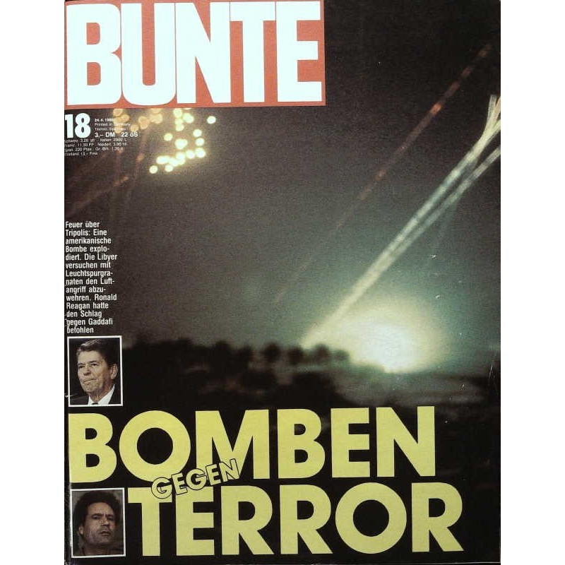 Titlebild: Bomben gegen Terror: Feuer über Tripolis, eine amerikanische Bombe explodiert. Die Libyer versuchen mit Leuchtspurgranaten den Luftangriff abzuwehren. Ronald Reagon hatte den schlag gegen Gaddafi befohlen