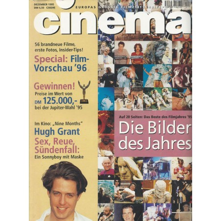Themen: Vier Identitäten und ein Sündenfall: Star in aller Munde: die Krisen des Hugh Grant Ich bin machtbesessen!: Erfolgsmensch Michael Douglas im Gespräch Reich und Reicher... wird Mister Kinokasse Jim Carrey. Ein Porträt des 20-Millionen-Dollar-Mannes Antonio Banderas: Spaniens Geschenk an die Damenwelt: Ein Porträt des Latin Lover, der nun Hollywood erobert Heute Hollywood, Morgan die Welt: Mit dem Thriller Sieben zur vierten Oscar Nominierung? Morgan Freeman im Gespräch Ich werde Eremit: ... droht Götz George, der im besten und im schlechtesten deutschen Film des Jahres spielt Große Filmvorschau 1996: Das kommende Halbjahr hat's in sich: über 50 neue Filme im 13seitigen CINEMA-Pack