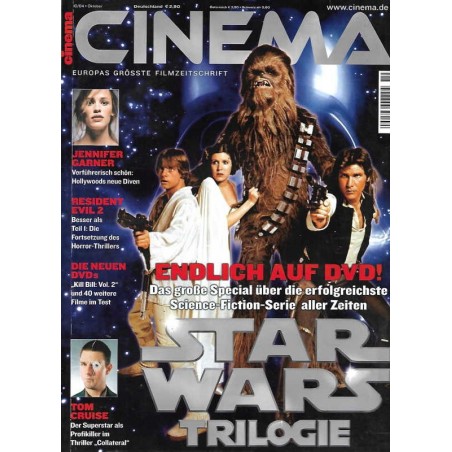 Themen STAR WARS: Das Warten hat ein Ende. Ab 20. September gibt es die Urfassung der Reihe als opulent ausgestattete DVD-Box. CINEMA erinnert an die Entstehung des „Star Wars"-Mythos COLLATERAL: „Heat"-Regisseur Michael Mann besetzt Toni Cruise als aalglatten Profikiller. Kann das funktionieren? KUNST AUF DEM KOPF: Ein Fotoband zeigt die schönsten Frauen der Welt in haarigen Situationen JEAN-JACQUES ANNAUD: Der „Zwei Brüder"-Regisseur über die Faszination gefährlicher Raubtiere und sein Herz für Killer LEBENSKLUG DURCHS KINO: Da sag noch einer, Filme bilden nicht. Was uns das Kino Nützliches über das Leben lehrt EXORCIST: DER ANFANG: Auch das Böse hat mal klein angefangen. Alle Infos zum Prequel des legendären Horrorklassikers HOLLYWOOD INTIM: Korrespondent Scott Orlin über Stars und ihre Nebenjobs KALKOFES KINOTAGEBUCH: Unser Kolumnist Oliver Kalkofe kennt keine Gnade — meistens jedenfalls RESIDENT EVIL: APOCALYPSE: Was den kanadischen Drehort Toronto so attraktiv für internationale Produktionen macht. Plus: ein Interview mit Hauptdarsteller Thomas Kretschmann über seine US-Karriere