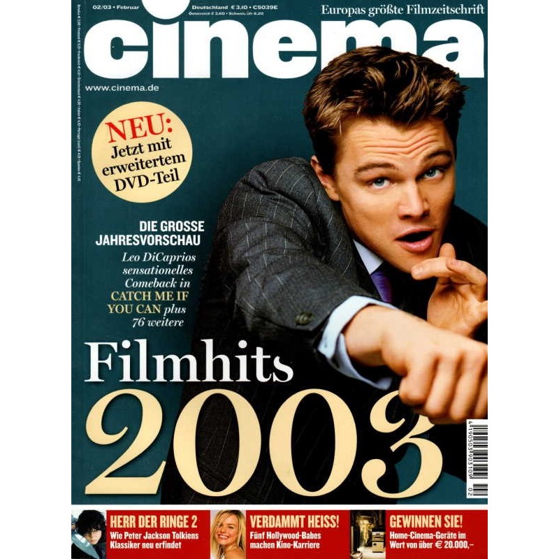 Storys CATCH ME IF YOU CAN Er gab sich als Pilot, Kinderarzt und Anwalt aus: Die Karriere des Hochstaplers Frank Abagnale, Jr. inspirierte Steven Spielberg zu einer Krimikomödie. Dazu fiihrte CINEMA ein Exklusiv-Interview mit Hauptdarsteller Leo DiCaprio STAR TREK: NEMESIS Das 10. Enterprise-Abenteuer ist das letzte einer glorreichen Epoche MY BIG FAT GREEK WEDDING Wie Tom Hanks die Low-Budget-Komödie zum Riesenhit machte SOLARIS James Cameron, George Clooney und Steven Soderbergh deuten ihr rätselhaftes Sci-Fi-Abenteuer DER HERR DER RINGE 2 Was hat ein Ork mit Handy in Mittelerde verloren? DIE HERRSCHAFT DES FEUERS Die Produktion des Drachentöter-Spektakels - eine Katastrophe