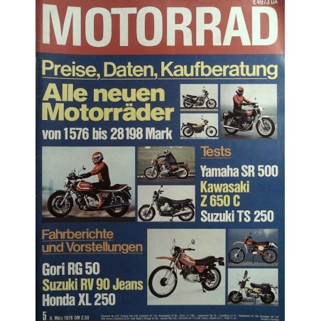 TECHNIK UND TEST Alle Modelle 1978 Um jeden Preis Technische Daten, Preise Nachrichten Vorstellung Suzuki RV 90 Jeans New Jeans Test Suzuki TS 250 Masse statt Klasse Fahrbericht Gori RG 50 Feldjäger Test Kawasaki Z 650 C Schön blau Vorstellung Honda XL 250 Hobbykrad MOTORRAD-Technik: Fahrwerkkonstruktion Federbein-Verstellung