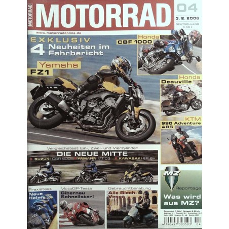 PLUS: Die neue Mitte: Suzuki GSR 600, Yamaha MT-03, Kawasaki ER-6n - Praxistest: Neue Helme - Moto GP-Tests: Gibernau Schnellster - Gebruachtberatung: Alle Blech-Vespa - Reportage: Was wird aus MZ?