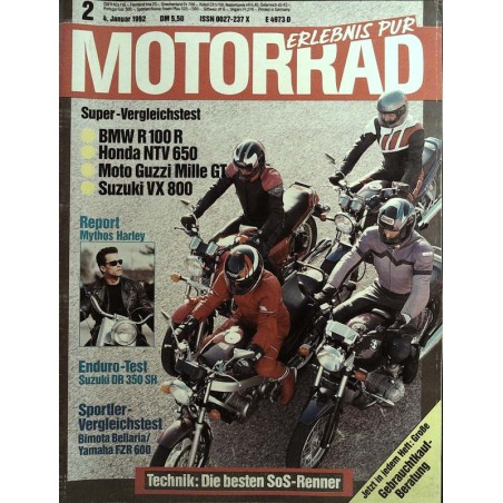 PLUS: Report: Mythos Harley - Enduro-Test: Suzuki DR 350 SH - Sportler-Vergleichstest: Bimota Bellaria / Yamaha FZR 600 - Technik: Die besten SoS Renner - Jetzt in jedem Heft: Große Große Gebruachtkauf-Beratung