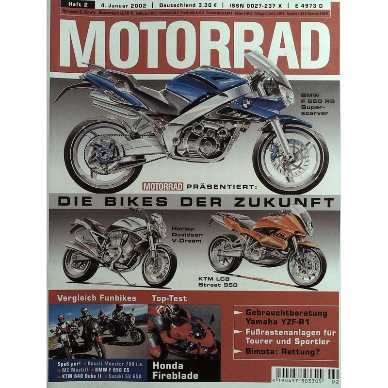 Original-Inhaltsbeschreibung der Zeitschrift Motorrad Nr.2 / 4 Januar 2002 - Die Bikes der Zukunft:
